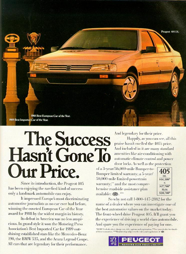Présentée en 1987, élue Voiture de l'Année 1988, puis Meilleure voiture importée aux USA en 1989, la 405 est probablement une des meilleures familiales de son époque.